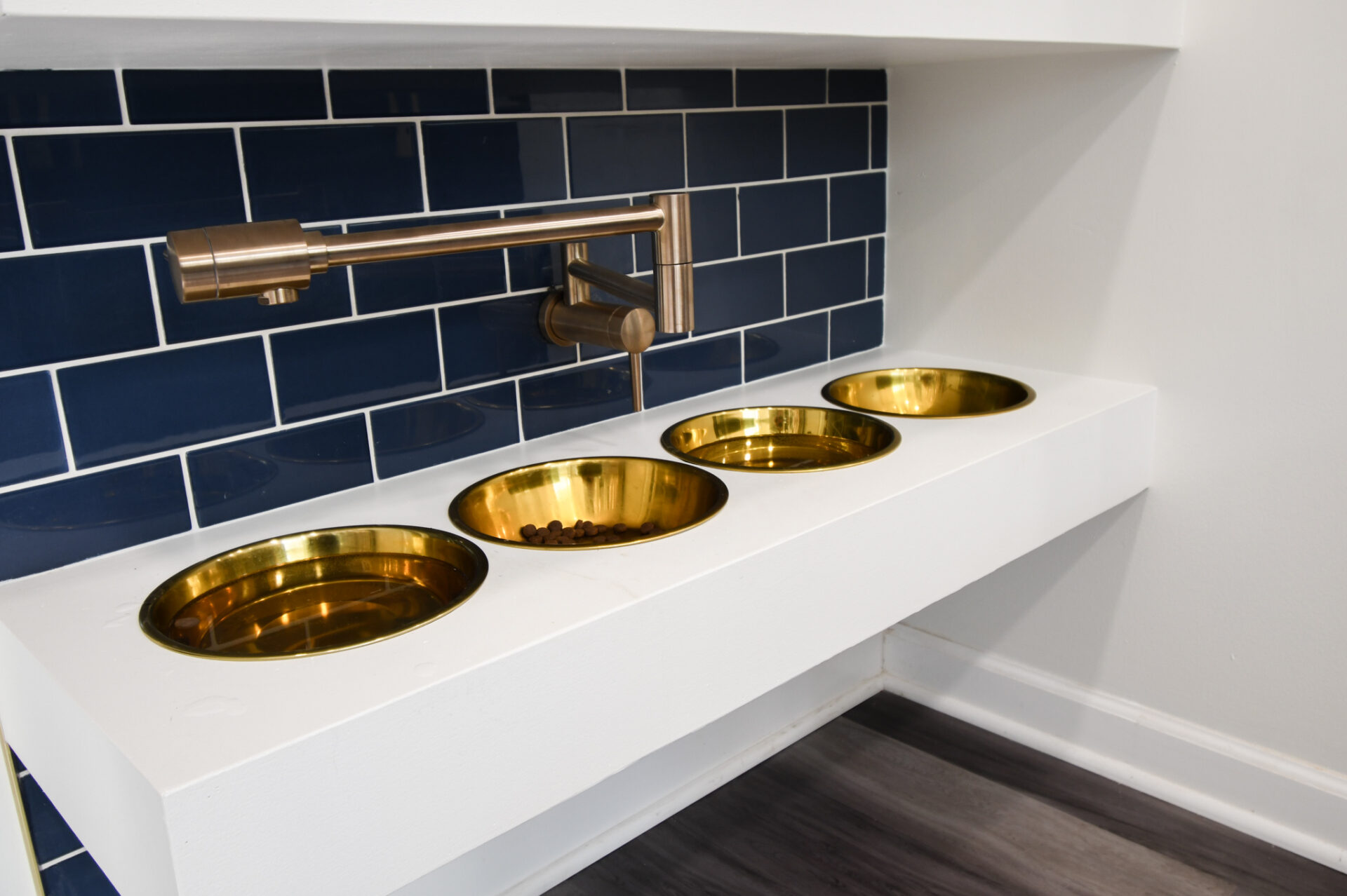 And maybe by now you might have noticed one of our favorite details of this project, the custom pet bowl shelf!